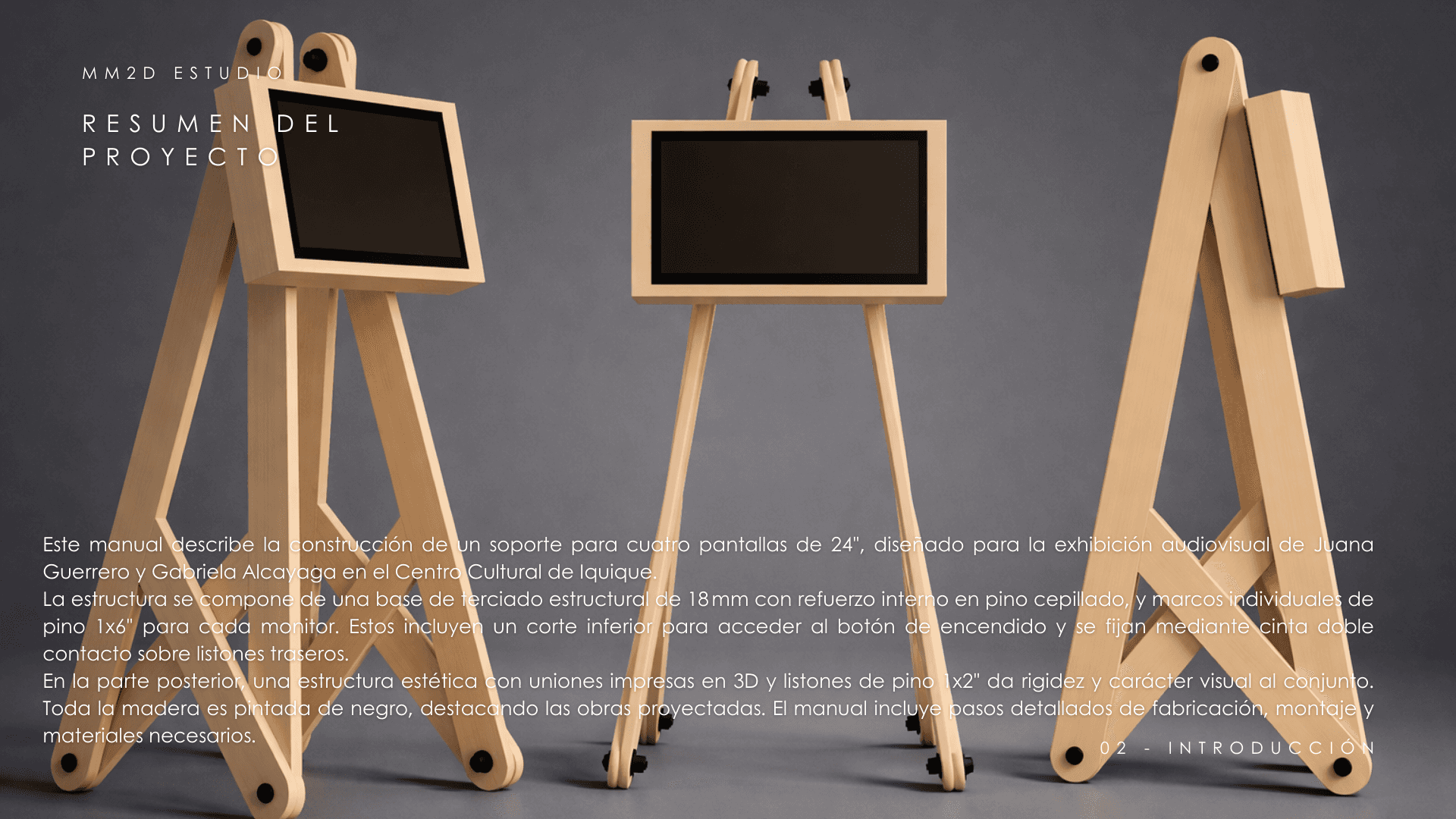 Diseñador y artista visual. Formación dibujo de arquitectura, modelado 3D, diseño escénico. Práctica que cruza espacialidad, visuales, luz y sonido. Desde 2022 dirige MM2D con taller propio en concepción y una red de colaboradores para proyectos culturales, institucionales y privados.