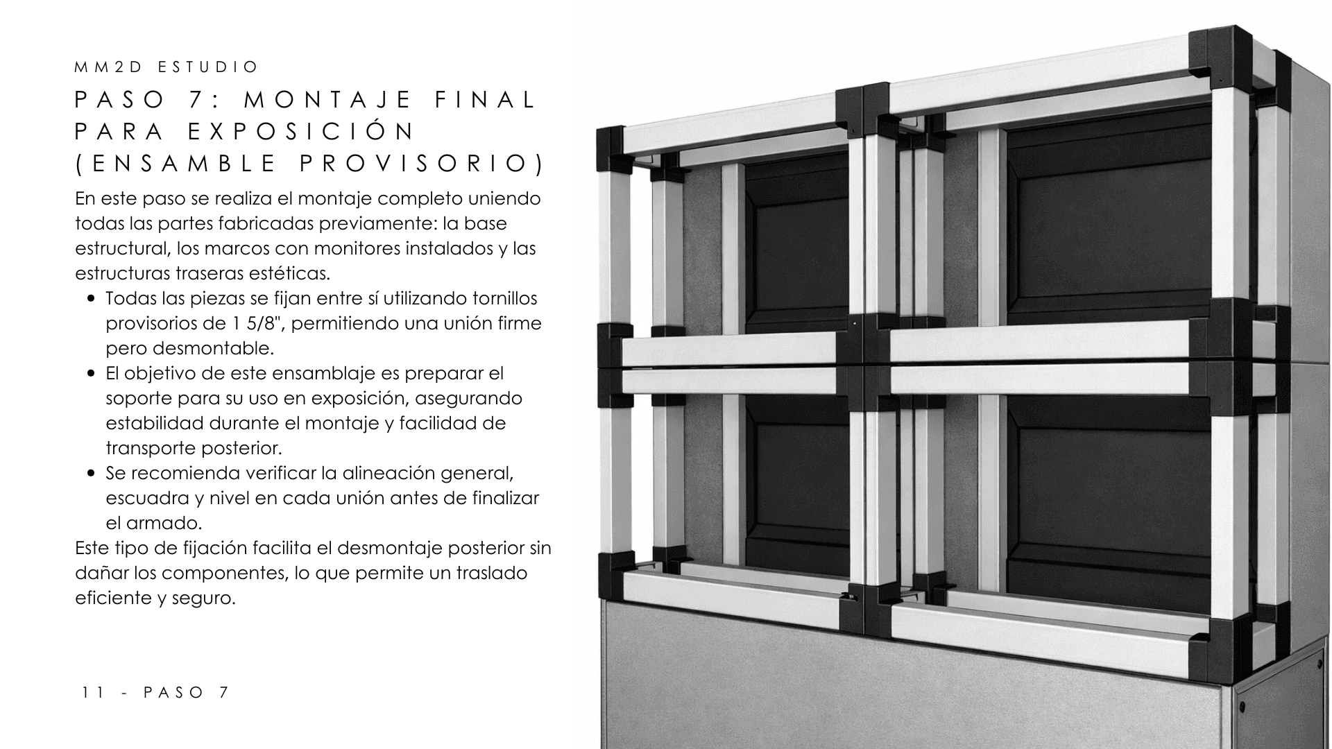 MM2D es un estudio creativo con taller propio. Trabajamos desde el concepto hasta la materialización — diseño escénico, comunicación editorial, identidad visual, producción cultural y fabricación. El soporte cambia según el proyecto; la forma de pensar no. Cada encargo define el equipo: colaboramos con una red de especialistas en construcción, animación, tecnología y comunicación para responder a cualquier escala.