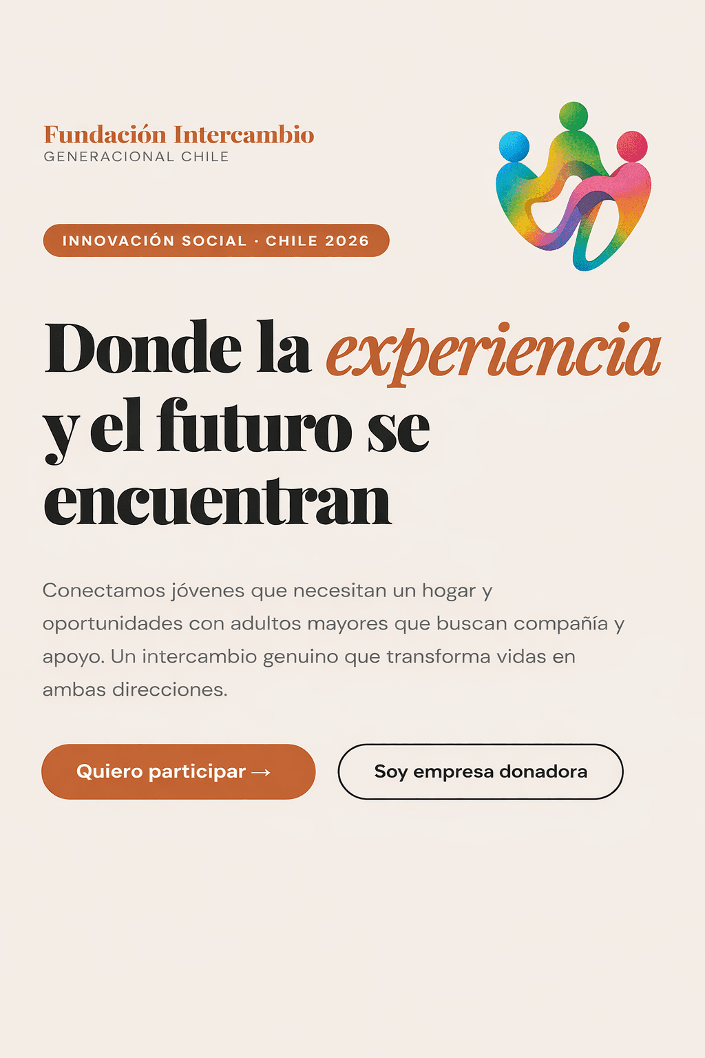 Conecta jóvenes sin oportunidades con adultos mayores que viven solos. Un modelo de convivencia estructurada que responde a dos crisis chilenas con una sola solución.